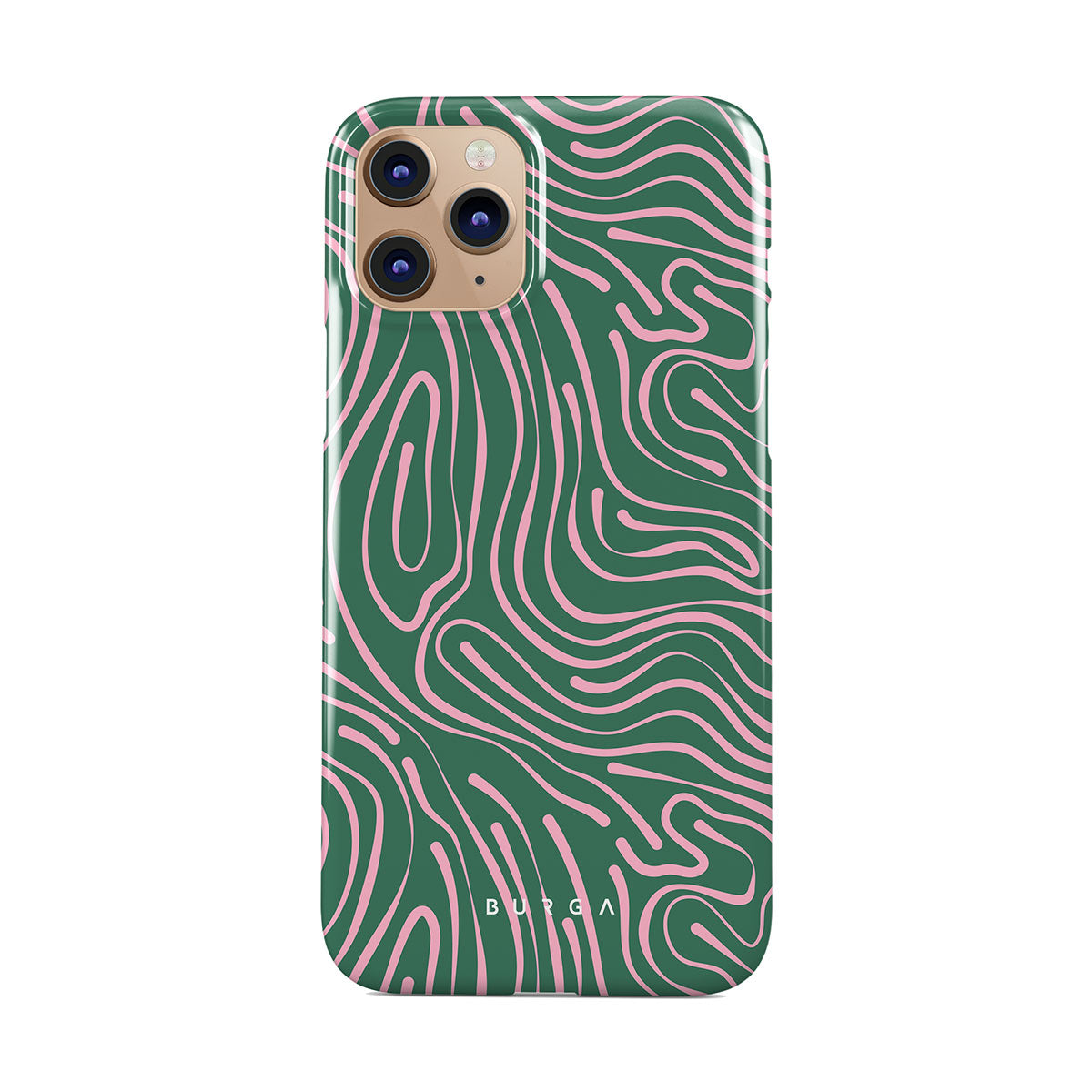 Fresh and mesmerizing, our Hawaiian Breeze iPhone 11 Pro phone case design combines a pastel pink wavy pattern with a crisp green background creating a refreshing look. The abstract pattern will indeed become a star in your accessorizing game, while the phone case will keep your device protected at all times!