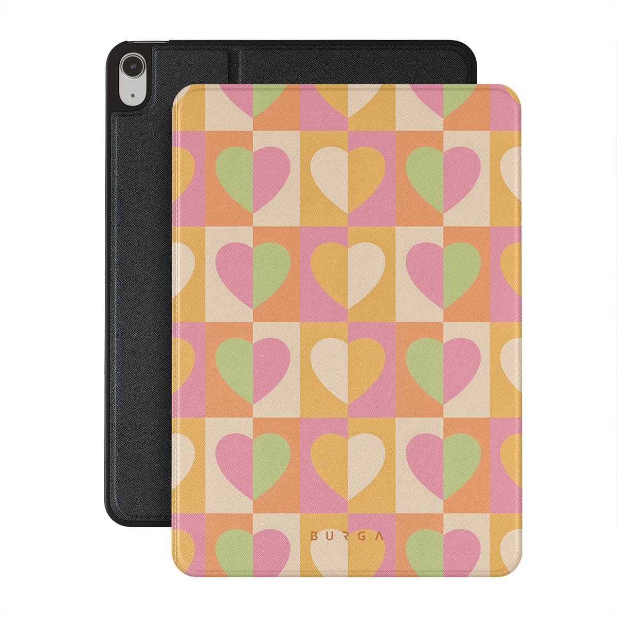 Beautifully geometrical and lovable Summer Love {iPad Model} iPad Air 11 (7th/6th Gen) folio case combines a soft pastel color scheme with a playful square heart pattern. Adding a touch of love to your style was never easier! Keep your iPad as safe as you keep your heart in a cheeky checkered protective iPad case!