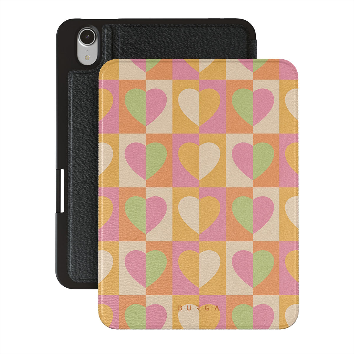 Beautifully geometrical and lovable Summer Love {iPad Model} iPad Mini 8.3 (A17 Pro/6th Gen) folio case combines a soft pastel color scheme with a playful square heart pattern. Adding a touch of love to your style was never easier! Keep your iPad as safe as you keep your heart in a cheeky checkered protective iPad case!