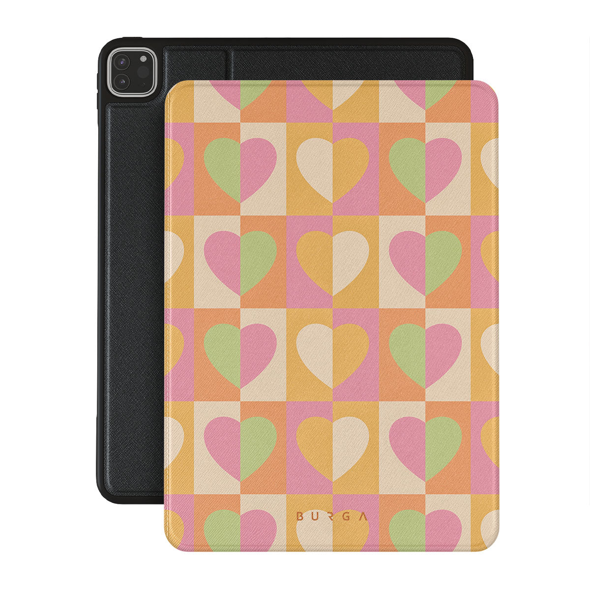 Beautifully geometrical and lovable Summer Love {iPad Model} iPad Pro 11 (4th/3rd Gen) folio case combines a soft pastel color scheme with a playful square heart pattern. Adding a touch of love to your style was never easier! Keep your iPad as safe as you keep your heart in a cheeky checkered protective iPad case!