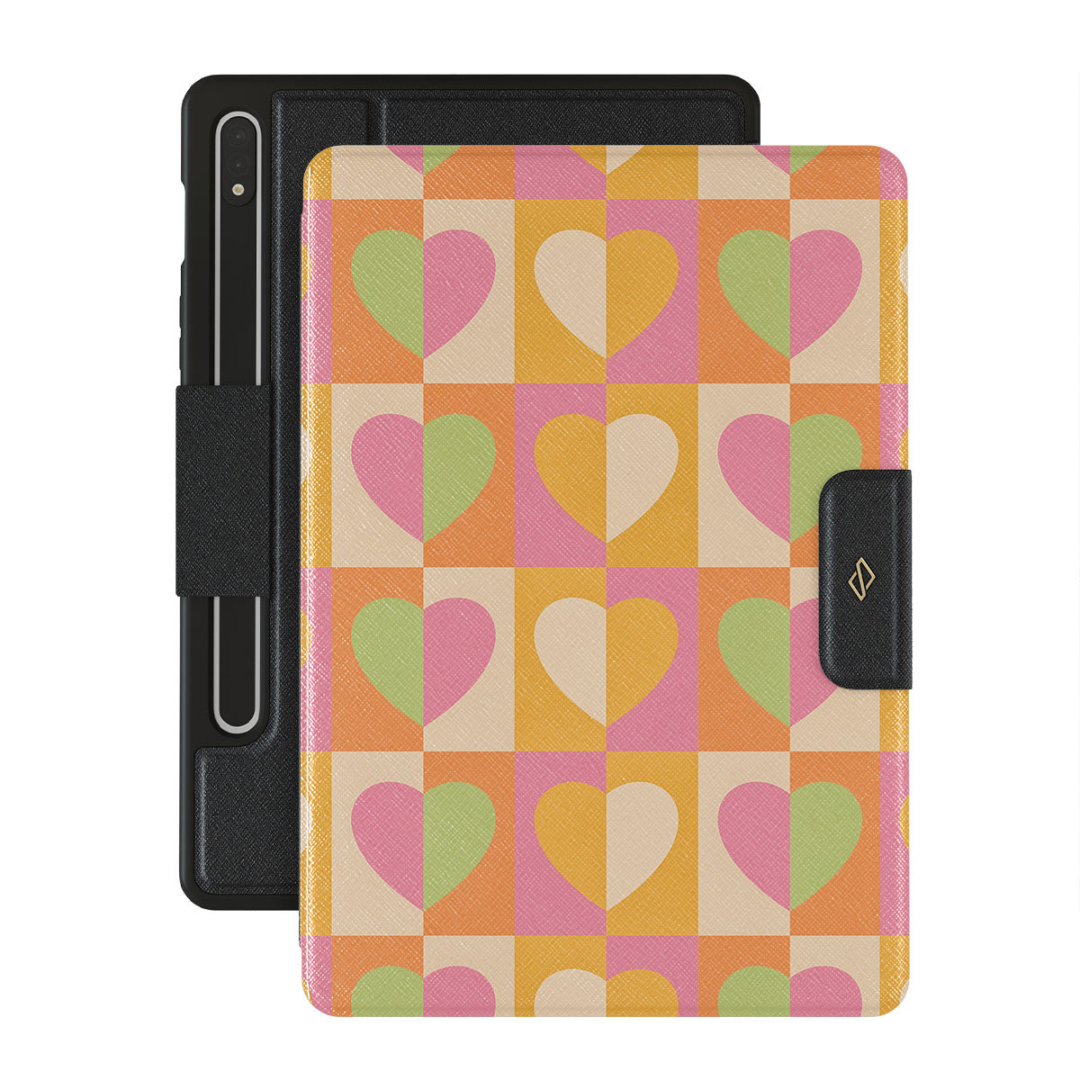 Beautifully geometrical and lovable Summer Love {Galaxy Tab Model} Samsung Galaxy Tab S9 folio case combines a soft pastel color scheme with a playful square heart pattern. Adding a touch of love to your style was never easier! Keep your Galaxy Tab as safe as you keep your heart in a cheeky checkered protective Galaxy Tab case!