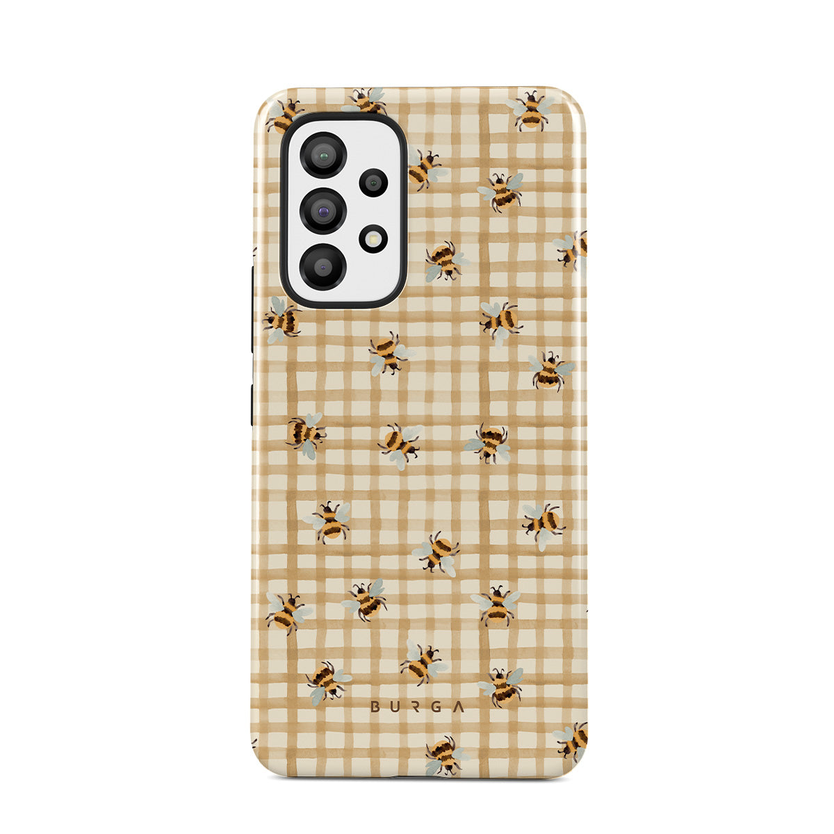 The Samsung Galaxy A23 4G / 5G phone case design is sweet without being cutesy. Bees and checks, yes, but it reads more clever than precious, like nature with good graphic design instincts.
