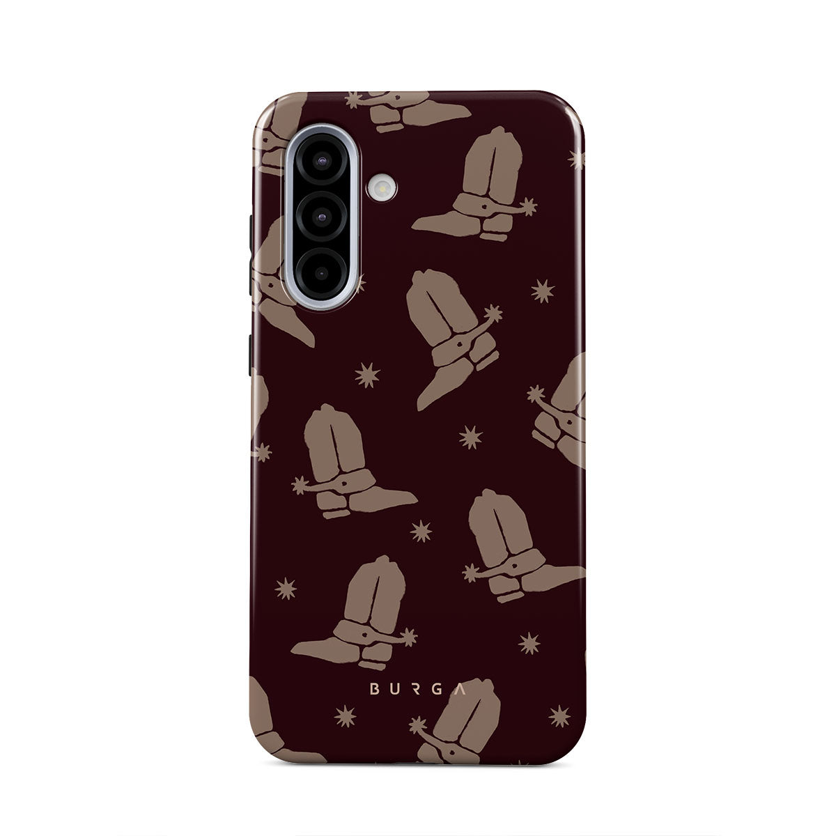 Say Howdy to this charming Samsung Galaxy A36 5G phone case design. Cowboy boots and stars dance across a deep brown background, celebrating the essence of western life. Perfect for those who embrace their free spirit.