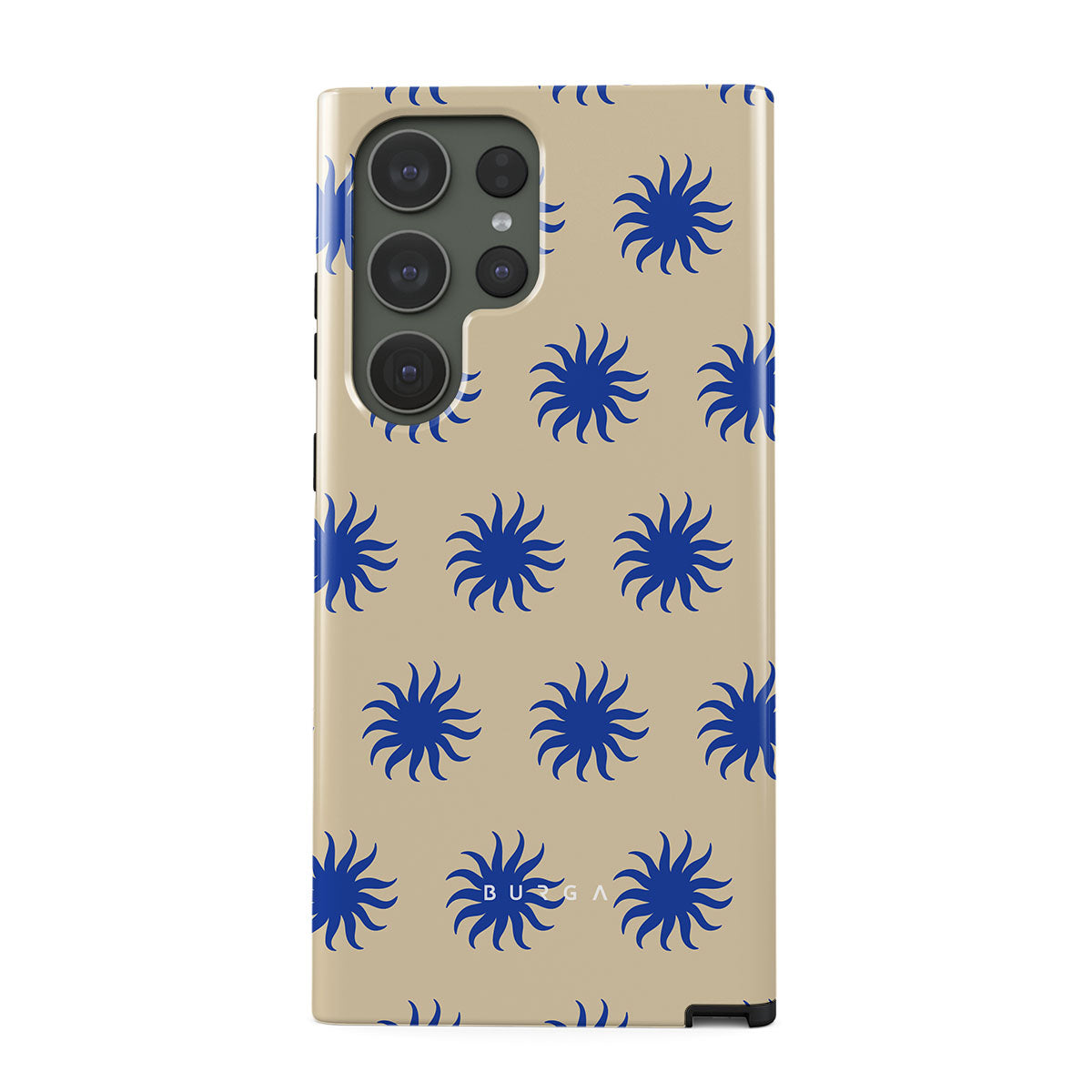 Immerse yourself in the vibrant spirit of the tropics with our La Playa Samsung Galaxy S23 Ultra phone case. This design boasts a warm, sandy beige base highlighted by striking blue motifs, reminiscent of the breezy Caribbean islands. It’s a stylish celebration of coastal beauty.