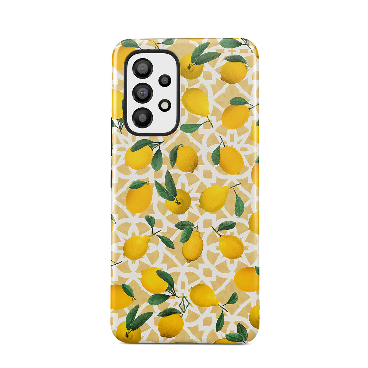 Freshly squeezed, freshly made drops in water, in your tea, and the scent that gives the energy for the rest of the day. Feel that energy with our Lemon Juice Samsung Galaxy A33 phone case made with a bright yellow lemons pattern that catches the eye. Let your phone become an energy beacon for your day!