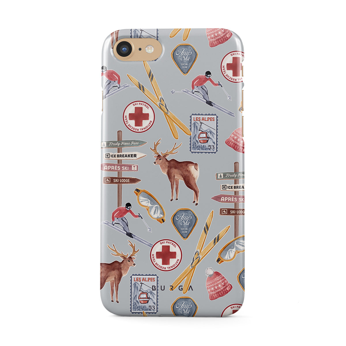 A vintage ski poster straight from your dad's college dorm. A iPhone SE (2020) phone case design dripping with nostalgia.