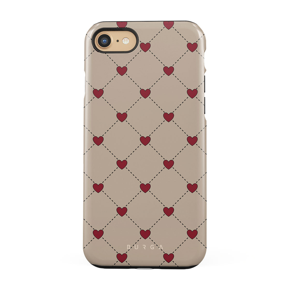Secrets of the heart whispered between elegant beige diamonds. Every moment, a red heart shimmers—a hidden message, a silent wish, a love letter to the beholder. Discover our Love Letter iPhone 7 / iPhone 8 Case phone case design.