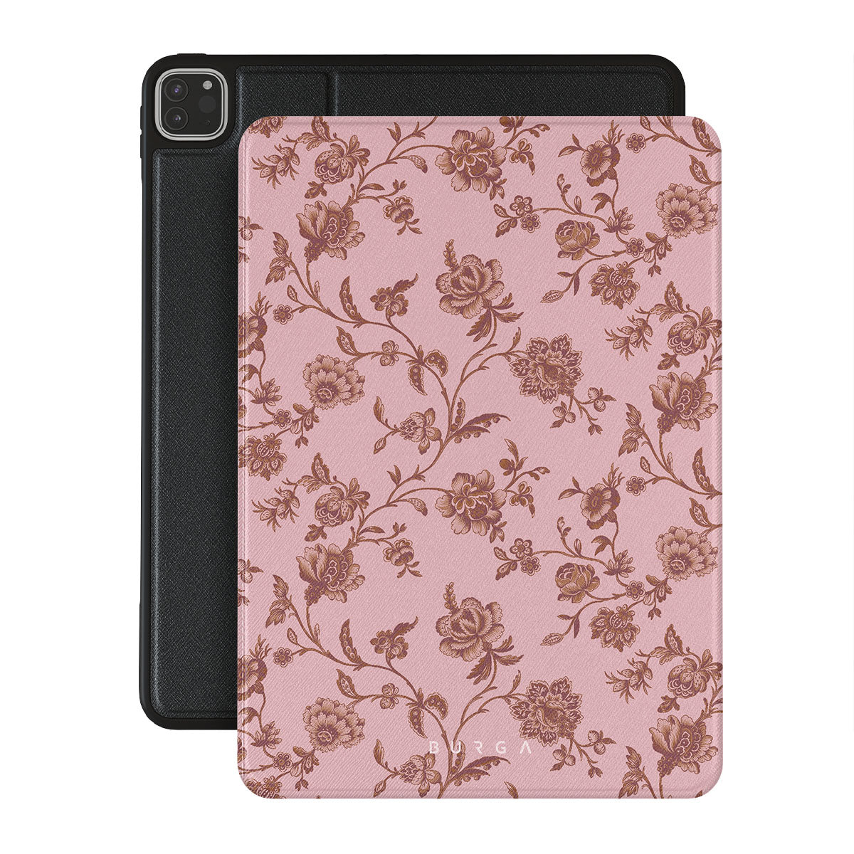 The Lover iPad Pro 12.9 (6th/5th Gen) folio case design: because you're a Lover, not a fighter. Delicate floral motifs across a soft pink background capture the essence of timeless beauty and rustic elegance. Perfect for modern-day cowgirls with a vintage heart.