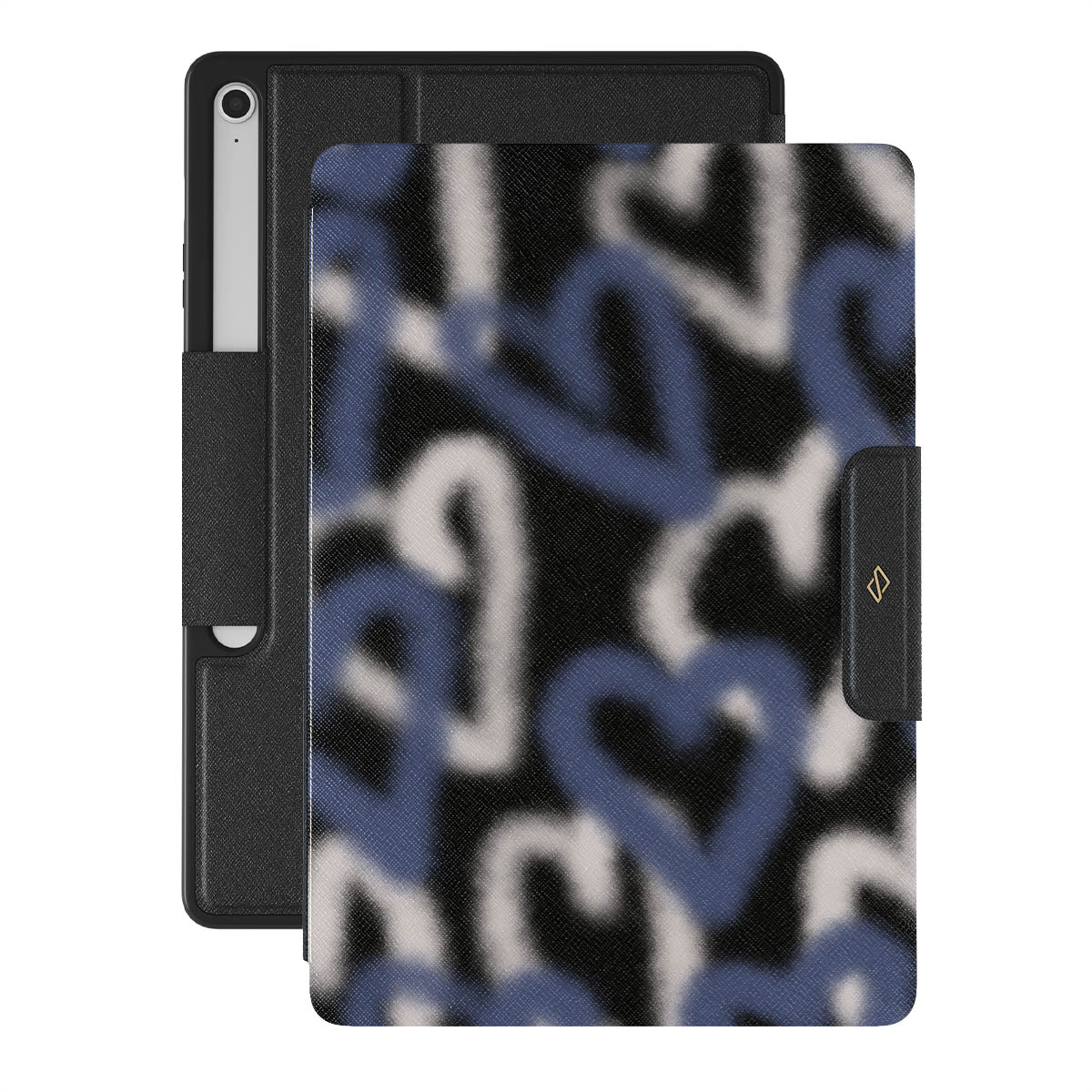 The Lucky You Samsung Galaxy Tab S10+ FE folio case captures the raw, unfiltered pulse of street art. Graffiti hearts in striking blue and white stand out against a black background, their edges softly faded. It’s a design that speaks to the restless who find beauty in chaos and dare to be different.