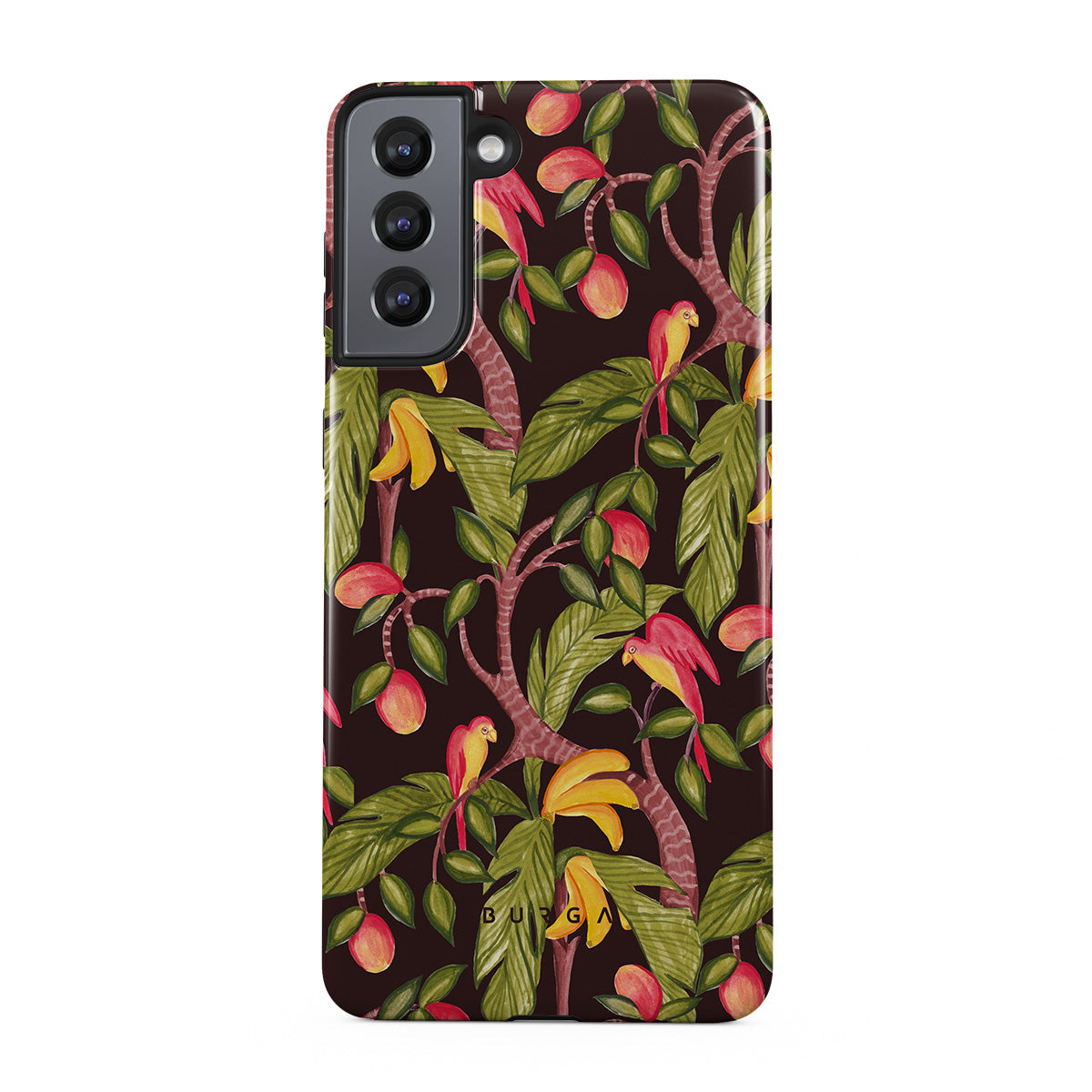 A lush botanical fantasy where ripe mangoes hang like forbidden fruit. Deep greens and juicy oranges pull you into a tropical escape. If this Samsung Galaxy S21 phone case design had a voice, it would purr.