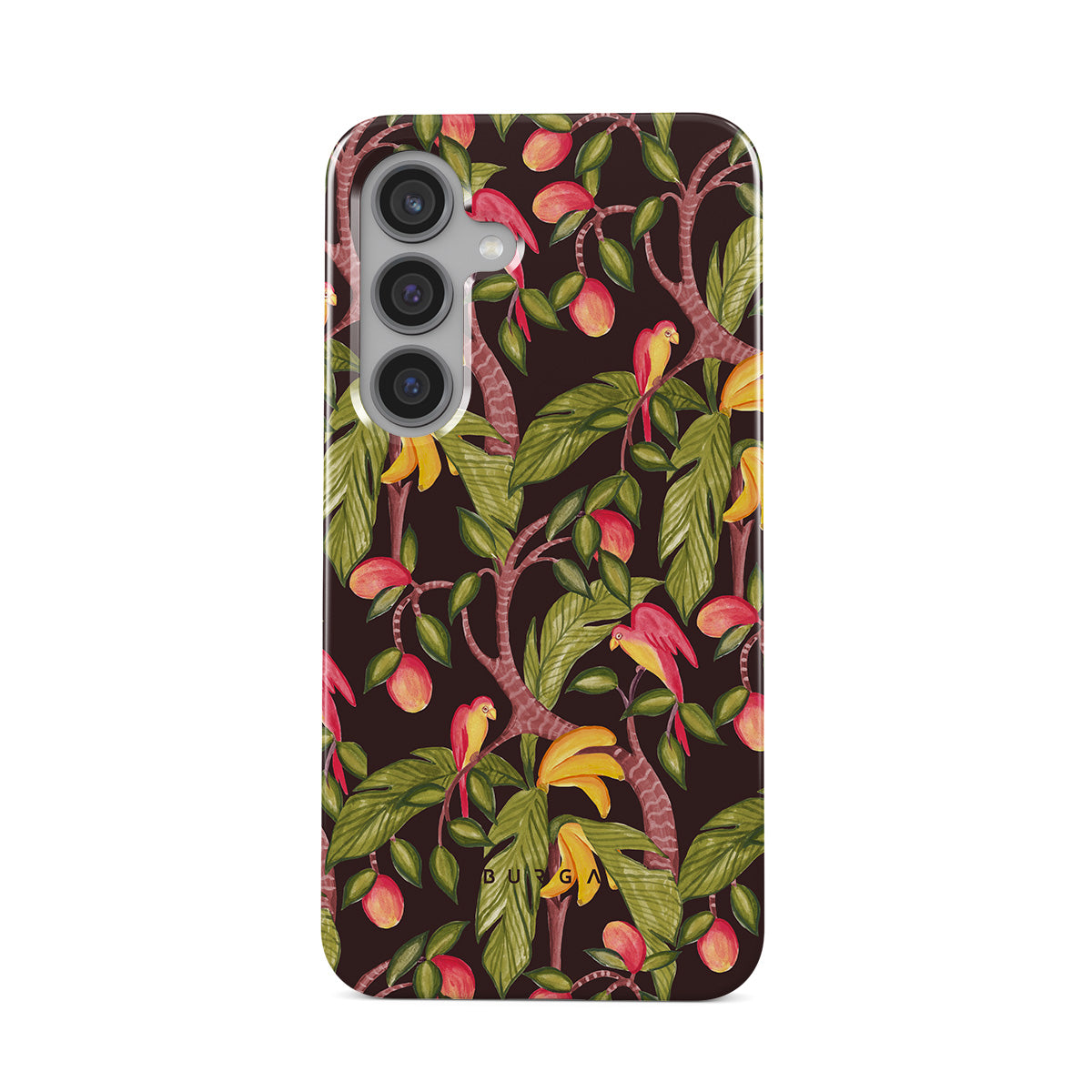 A lush botanical fantasy where ripe mangoes hang like forbidden fruit. Deep greens and juicy oranges pull you into a tropical escape. If this Samsung Galaxy S24 FE phone case design had a voice, it would purr.