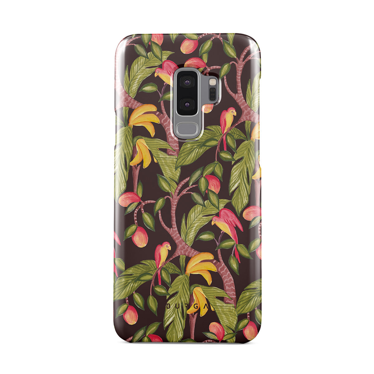 A lush botanical fantasy where ripe mangoes hang like forbidden fruit. Deep greens and juicy oranges pull you into a tropical escape. If this Samsung Galaxy S9 Plus phone case design had a voice, it would purr.