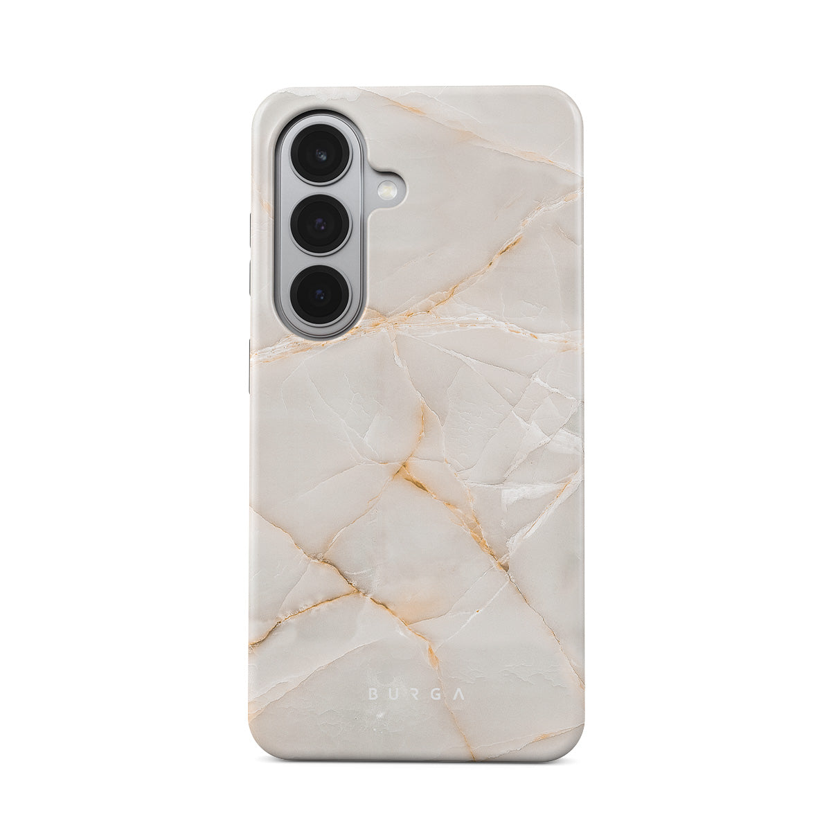 The Vanilla Sand Marble Samsung Galaxy S26 Plus phone case cover features a marble design with creamy canvas showcasing beautiful golden hues. The soft-toned case will add a touch of luxury to the device while protecting it from dangerous falls.