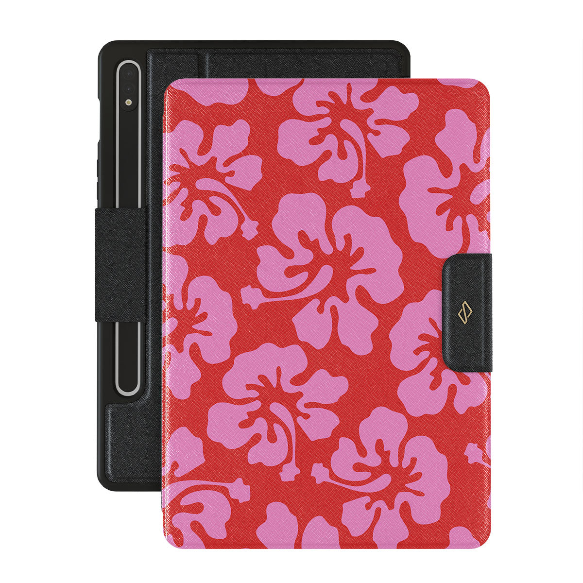 Dive into a sea of floral fantasy with Me Gustas Tu. Featuring oversized coral-toned blooms against a fiery backdrop, this Samsung Galaxy Tab S9 FE folio case design captures the wild heart of tropical flowers—perfect for those who want to carry a touch of exotic flair.