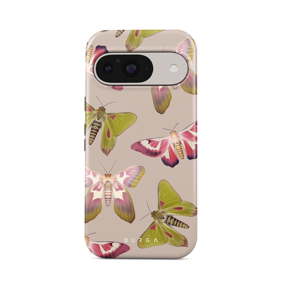 A tapestry of muted-toned moths — their wing patterns echoing tales of transformation and resilience found in nature's delicate beings. These moths, wings wide, serve as silent mentors, teaching us that every phase of life and change holds its own magic and mystery. Discover our Metamorphosis Google Pixel 10 phone casedesign.