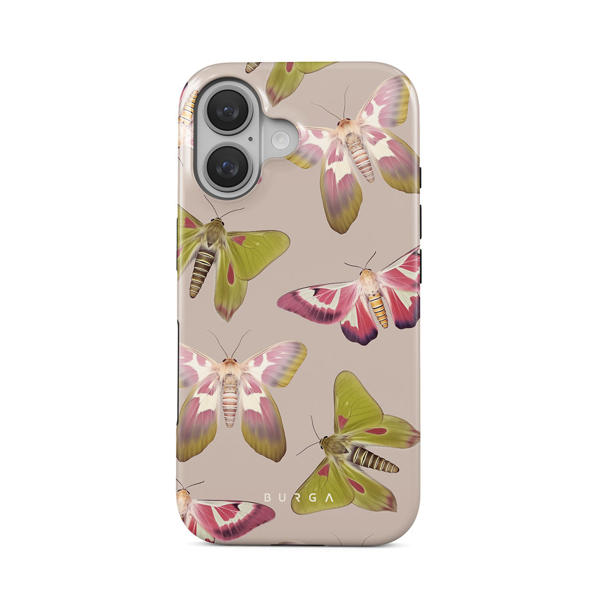A tapestry of muted-toned moths — their wing patterns echoing tales of transformation and resilience found in nature's delicate beings. These moths, wings wide, serve as silent mentors, teaching us that every phase of life and change holds its own magic and mystery. Discover our Metamorphosis iPhone 16 Plus phone casedesign.