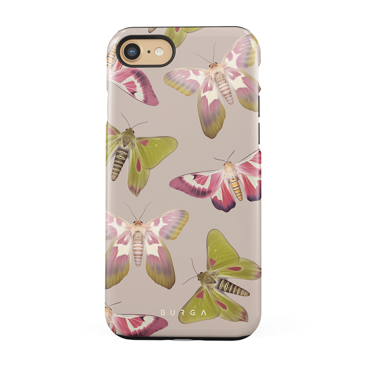 A tapestry of muted-toned moths — their wing patterns echoing tales of transformation and resilience found in nature's delicate beings. These moths, wings wide, serve as silent mentors, teaching us that every phase of life and change holds its own magic and mystery. Discover our Metamorphosis iPhone SE (2020) phone casedesign.