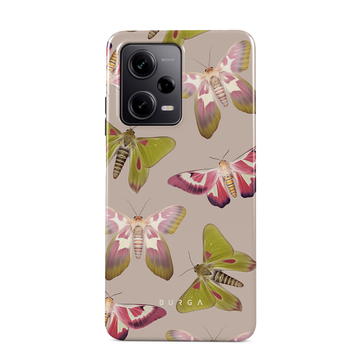 A tapestry of muted-toned moths — their wing patterns echoing tales of transformation and resilience found in nature's delicate beings. These moths, wings wide, serve as silent mentors, teaching us that every phase of life and change holds its own magic and mystery. Discover our Metamorphosis Xiaomi Redmi Note 12 Pro 5G phone casedesign.
