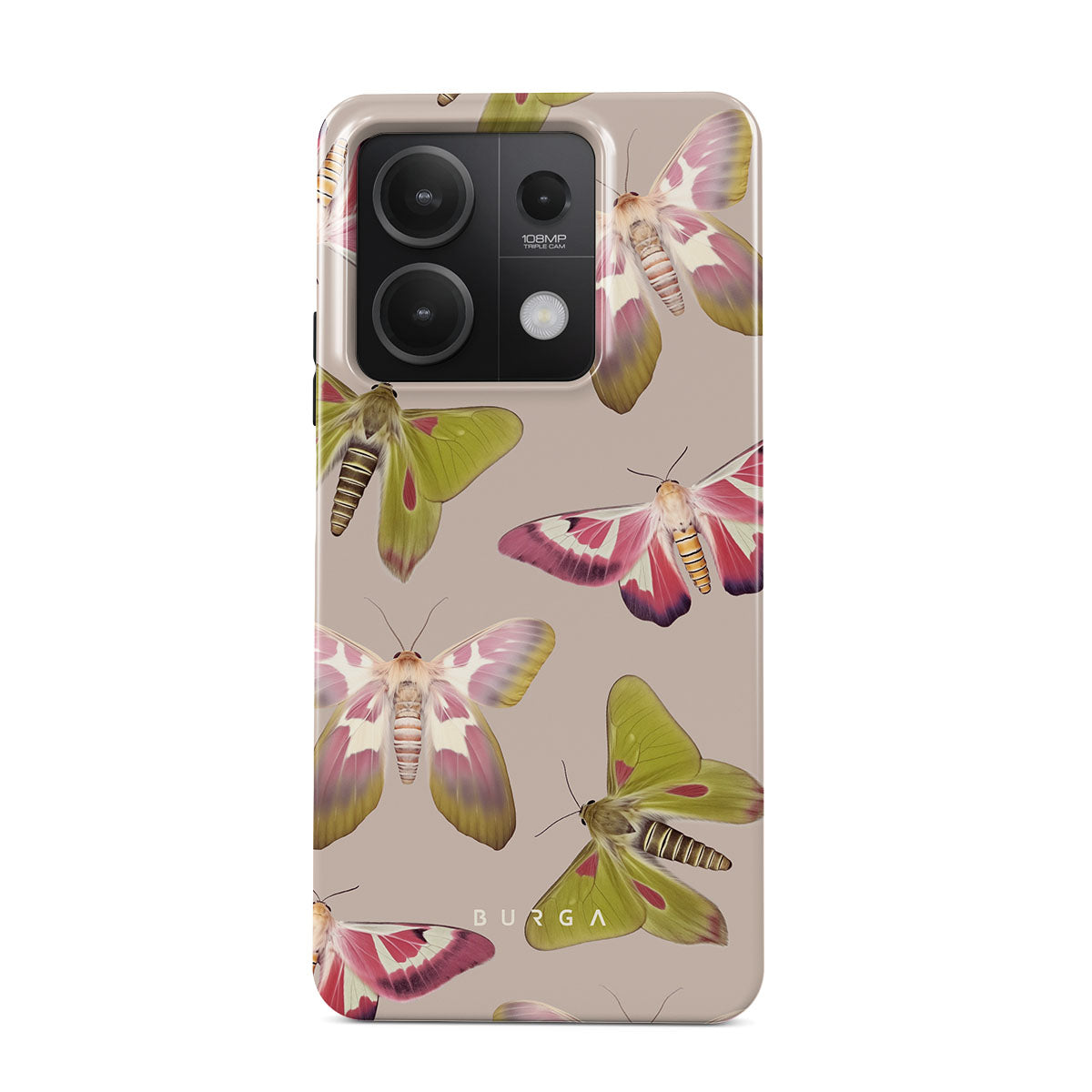 A tapestry of muted-toned moths — their wing patterns echoing tales of transformation and resilience found in nature's delicate beings. These moths, wings wide, serve as silent mentors, teaching us that every phase of life and change holds its own magic and mystery. Discover our Metamorphosis Xiaomi Redmi Note 13 5G phone casedesign.