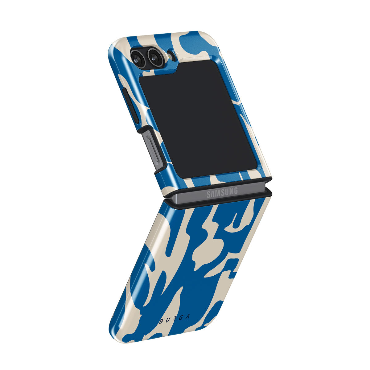 Indulge in the exquisite elegance of Mirage. Against a canvas of deep, enigmatic blue, luminous shapes gracefully disrupt the darkness, creating a captivating visual spectacle. Let this Samsung Galaxy Z Flip 5 phone case be a symbol of your impeccable taste and magnetic charm.