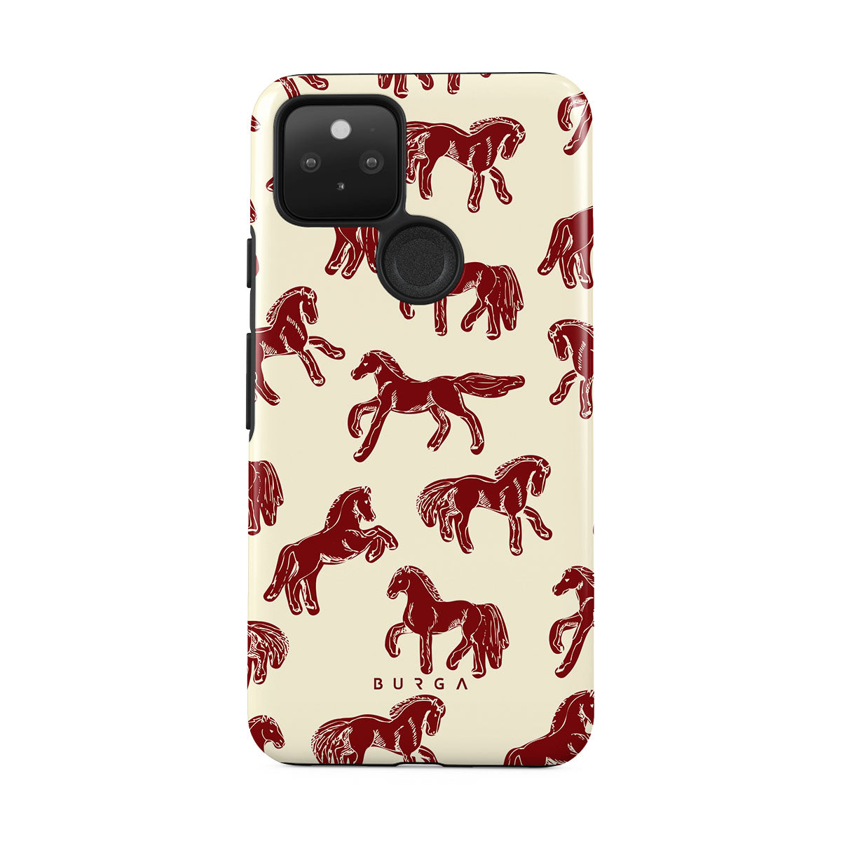 It's time to unleash your wild side with the Mustang design. Bold red horses gallop across a nude background, capturing the spirit of untamed adventure. This Google Pixel 5 phone case is perfect for the free-spirited souls ready to ride into the unknown.