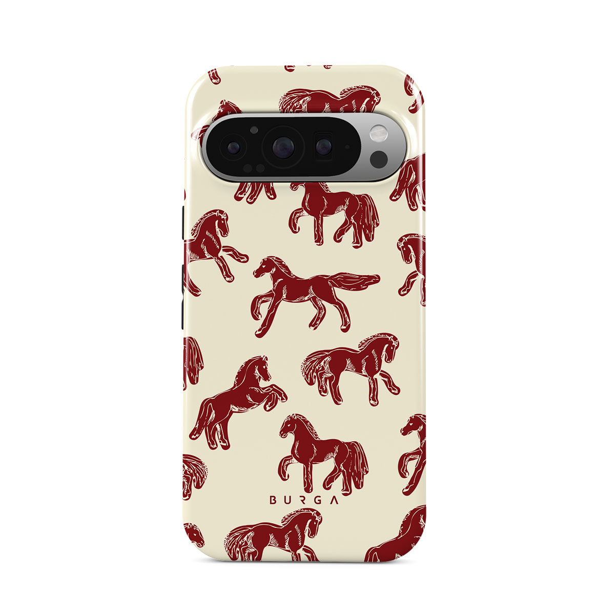 It's time to unleash your wild side with the Mustang design. Bold red horses gallop across a nude background, capturing the spirit of untamed adventure. This Google Pixel 9 Pro phone case is perfect for the free-spirited souls ready to ride into the unknown.