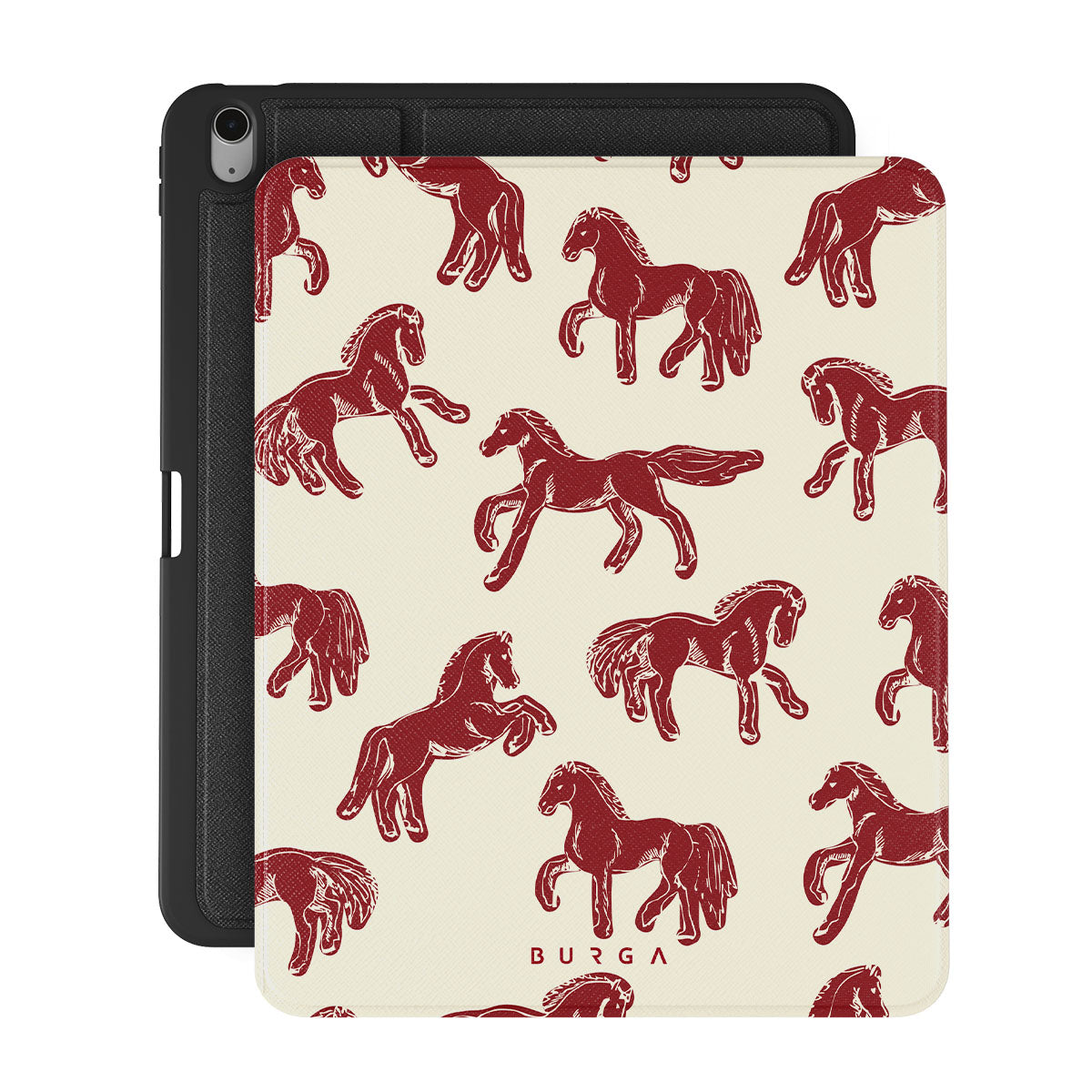 It's time to unleash your wild side with the Mustang design. Bold red horses gallop across a nude background, capturing the spirit of untamed adventure. This iPad Air 13 (7th/6th Gen) folio case is perfect for the free-spirited souls ready to ride into the unknown.