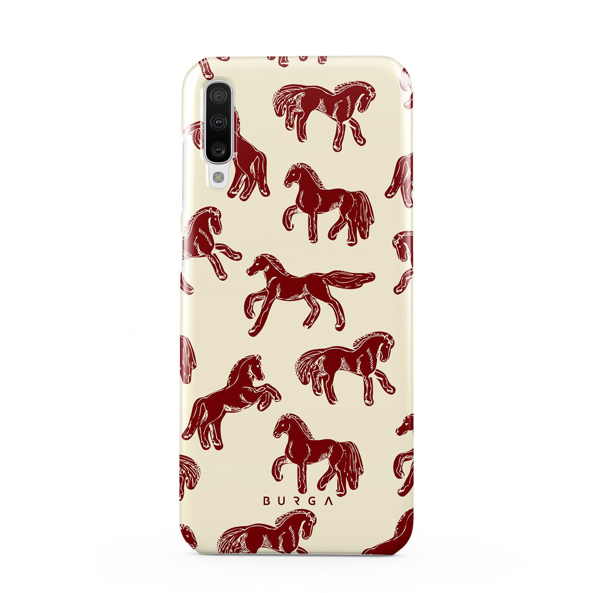 It's time to unleash your wild side with the Mustang design. Bold red horses gallop across a nude background, capturing the spirit of untamed adventure. This Samsung Galaxy A70 phone case is perfect for the free-spirited souls ready to ride into the unknown.