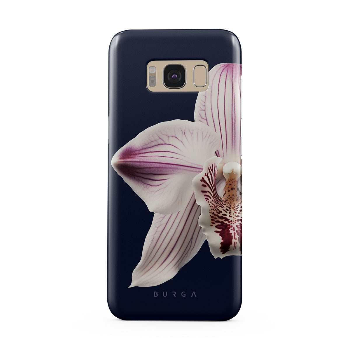 The white orchid blooms boldly upon a night sky blue, a beacon of clarity in the darkness. Our Nectar Samsung Galaxy S8 phone case design speaks to the soul's desire to find light within, to illuminate the hidden paths of self-discovery that only reveal themselves under the cloak of introspection.