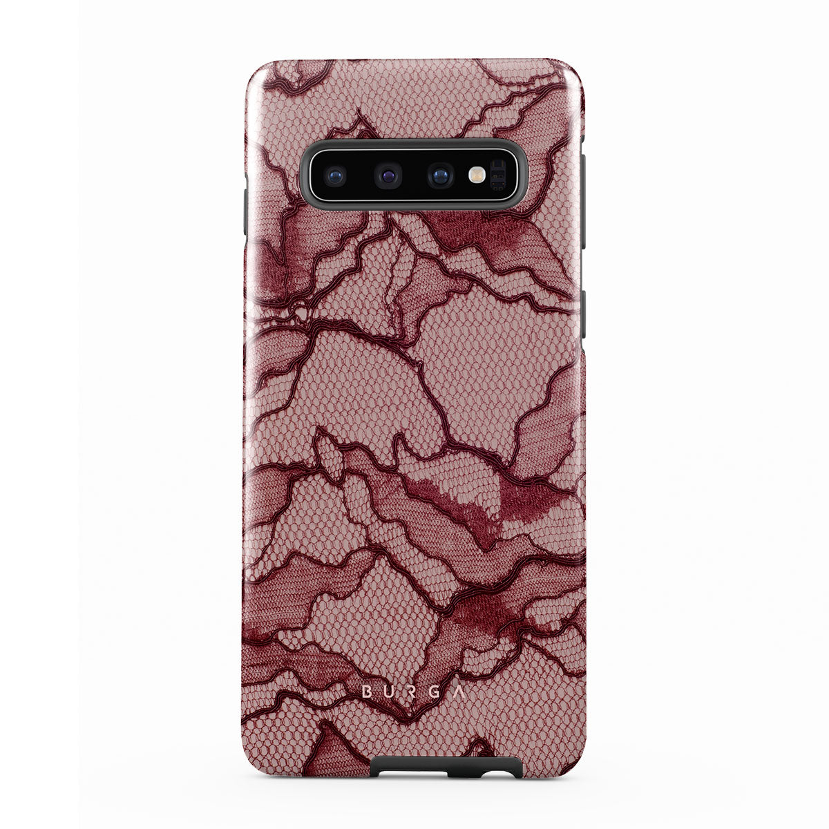 Channel your inner power with our Office Siren Samsung Galaxy S10 Plus phone case design. A soft rosé backdrop and dark pink lace blend elegance and boldness, perfect for those who make quiet yet undeniable statements with confidence.