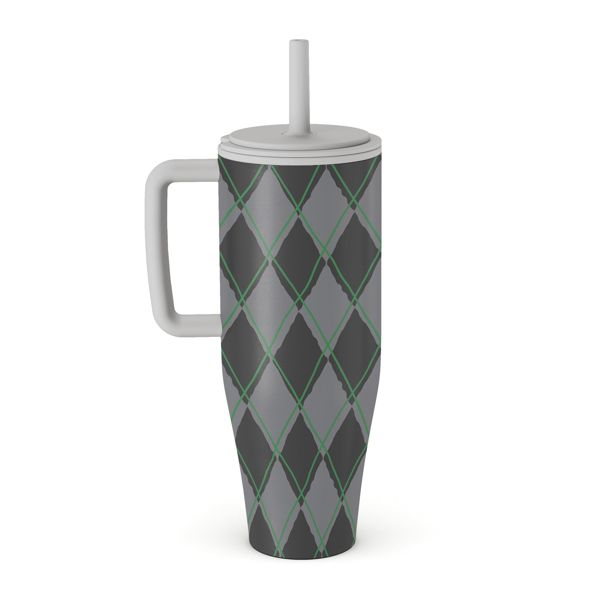 This design features: diamond pattern, green and gray, classic pattern, geometric pattern