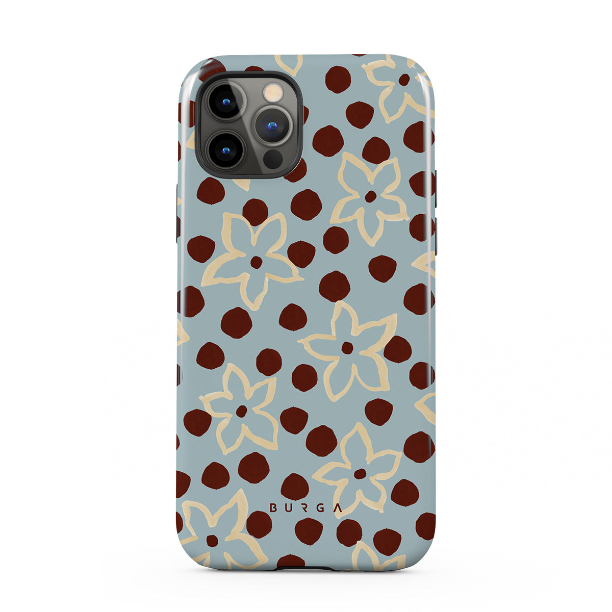 The Frutaria iPhone 12 Pro Max phone case design design: retro surf motel wallpaper meets vintage ceramics. The soft florals, earthy dots, and cool-toned palette give major “forgotten seaside town in the ‘70s” energy.