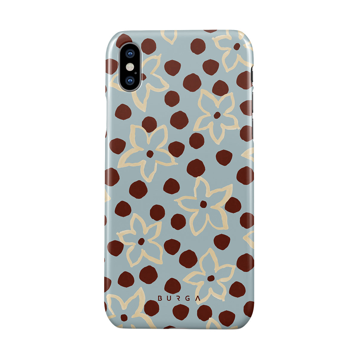 The Frutaria iPhone XS Max phone case design design: retro surf motel wallpaper meets vintage ceramics. The soft florals, earthy dots, and cool-toned palette give major “forgotten seaside town in the ‘70s” energy.