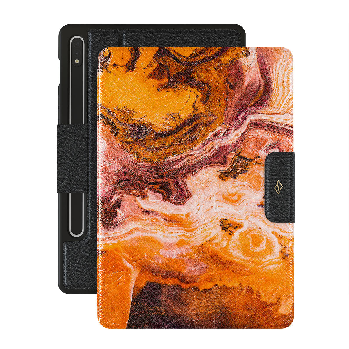 Sugar, spice, and everything nice. Add brightness to your everyday moments with a pretty orange marble Samsung Galaxy Tab S9 FE folio case. Your style deserves a pop of color, and a Pumpkin Spice Galaxy Tab case cover is the best way to add it without any hassle.