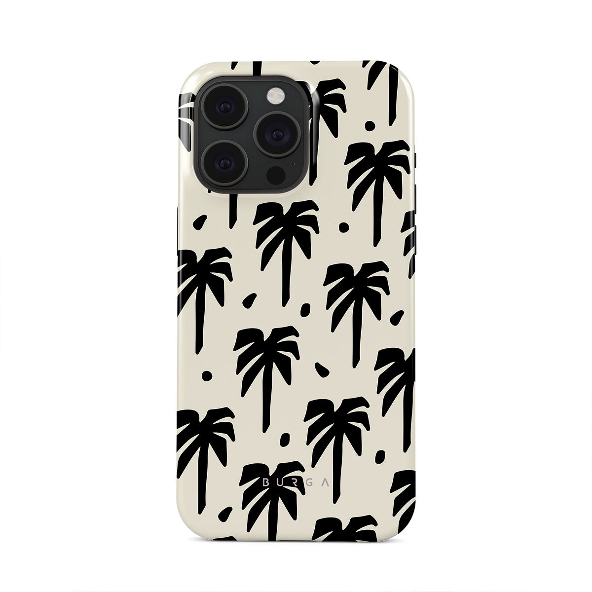 A peaceful haven right at your fingertips. The design contrasts black palm silhouettes against a calming light backdrop. Our Paraíso iPhone 15 Pro Max phone case is your passport to an everlasting tropical escape.