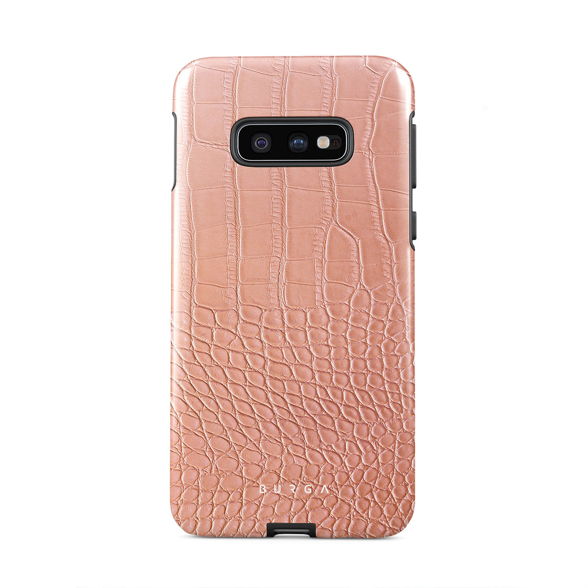 Our Pink Croco Samsung Galaxy S10E phone case features a classic crocodile design reimagined and showcased in a soft coral shade. The new take on the dangerous animal print will add a touch of softness to your style while simultaneously offering heavy-duty protection to your device.