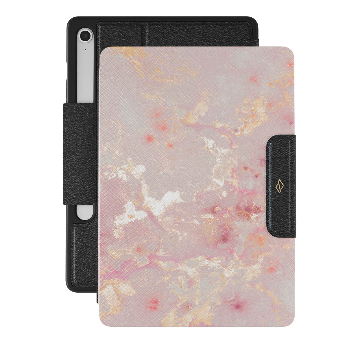 The sun is shining and creates a golden reflection in the corals. Take this scenery with yourself with our pretty and pink Golden Coral Samsung Galaxy Tab S10 FE folio case. Add protection to your Galaxy Tab with a unique pink marble pattern that is guaranteed to catch everyone's eye.