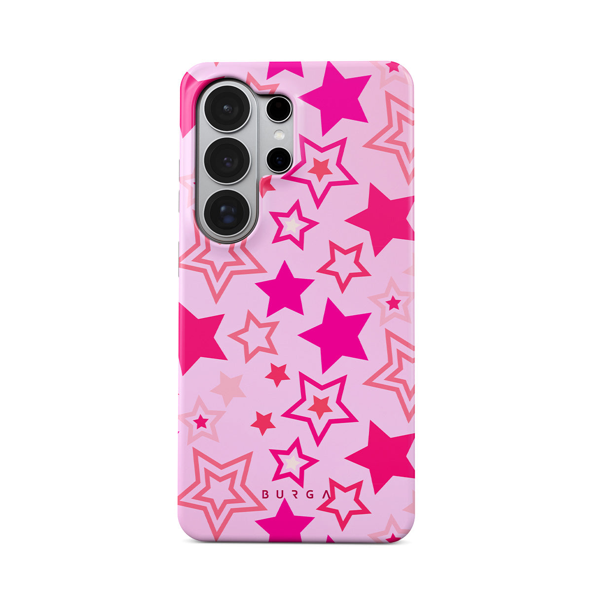 Buckle up for a starry ride, and let's twirl under the Plastic Sky. Neon stars shimmering across a cheeky rose-tinted galaxy create a playful space-disco atmosphere. Be the center of the universe with our Plastic Sky Samsung Galaxy S26 Ultra phone case!
