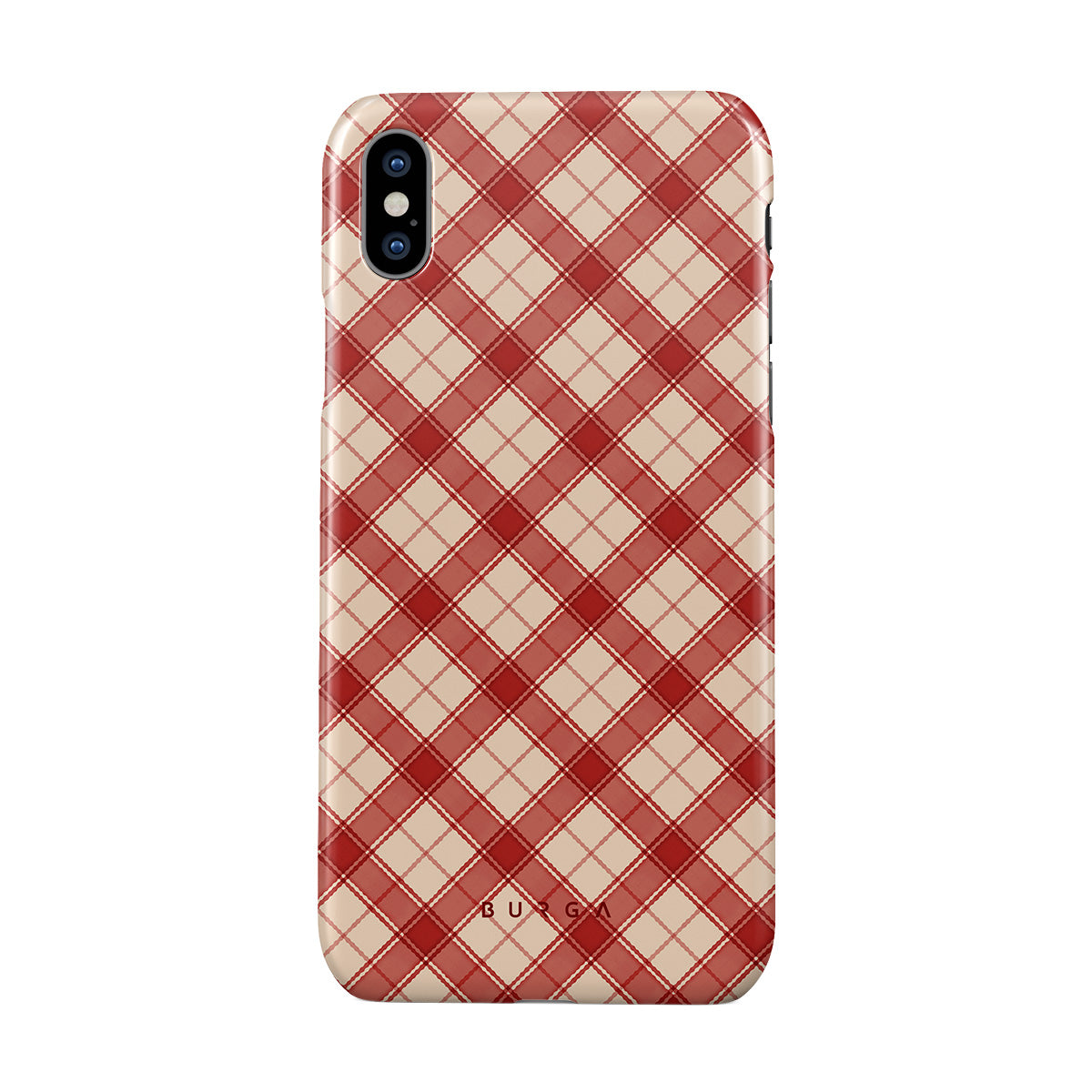 This design features: red and tan plaid, diagonal plaid pattern, classic tartan, buffalo check style, traditional Christmas plaid