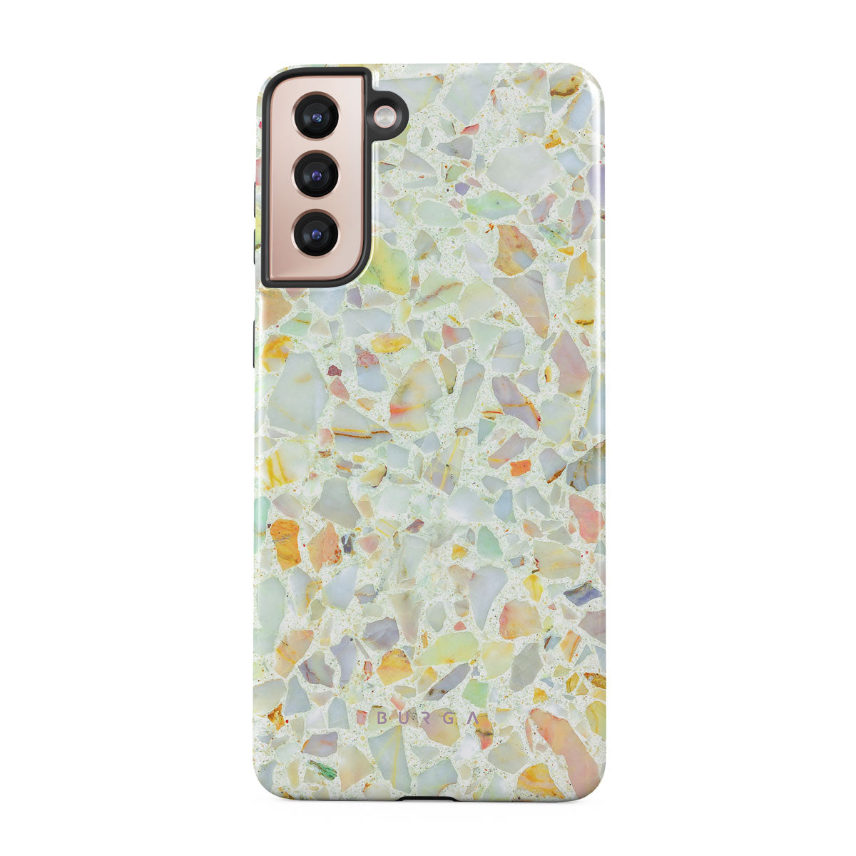 Sun is shining bright, creating rainbows on the path as the light and warm rain just washed the tiles. Walk around barefoot and feel the magic in your steps. Take this summery feeling encased in a cute Samsung Galaxy S21 Plus phone case that is as protective as mesmerizing the rainbow can be.