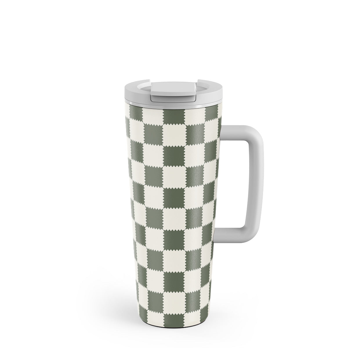 This design features: checkered pattern, green and white, geometric