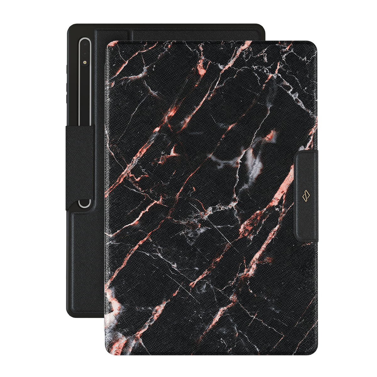 With our Rose Gold Marble Samsung Galaxy Tab S10 Ultra folio case cover, enjoy the contrasting light in design emphasized in the best marble way. Luxury case with a touch of a pretty pink that protects your Galaxy Tab – an absolute game-changer.