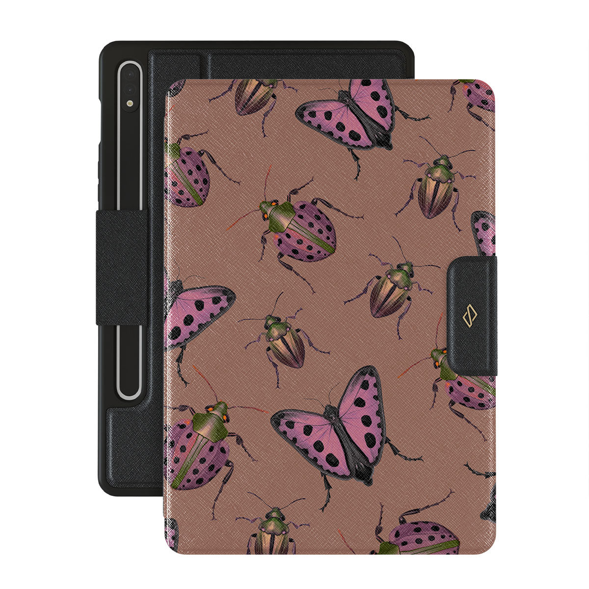 Embrace the symbiosis of nature with the Runaway Samsung Galaxy Tab S8/S7 folio case, where the delicate beauty of butterflies meets the earthy charm of beetles. This design is a celebration of life's intricate balance, a reminder that everything in nature has its place.