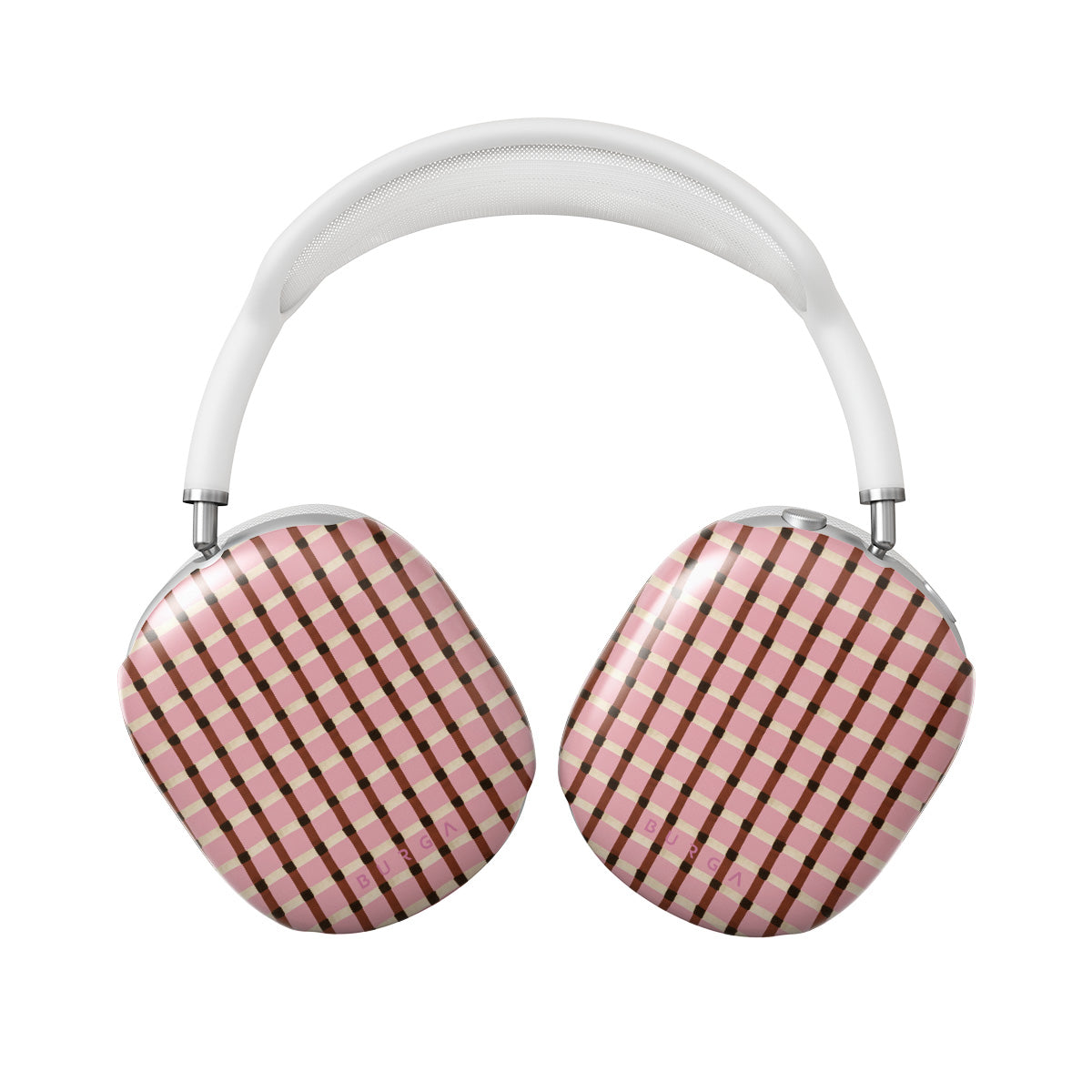 This design features: pink and brown checkered pattern, gingham pattern