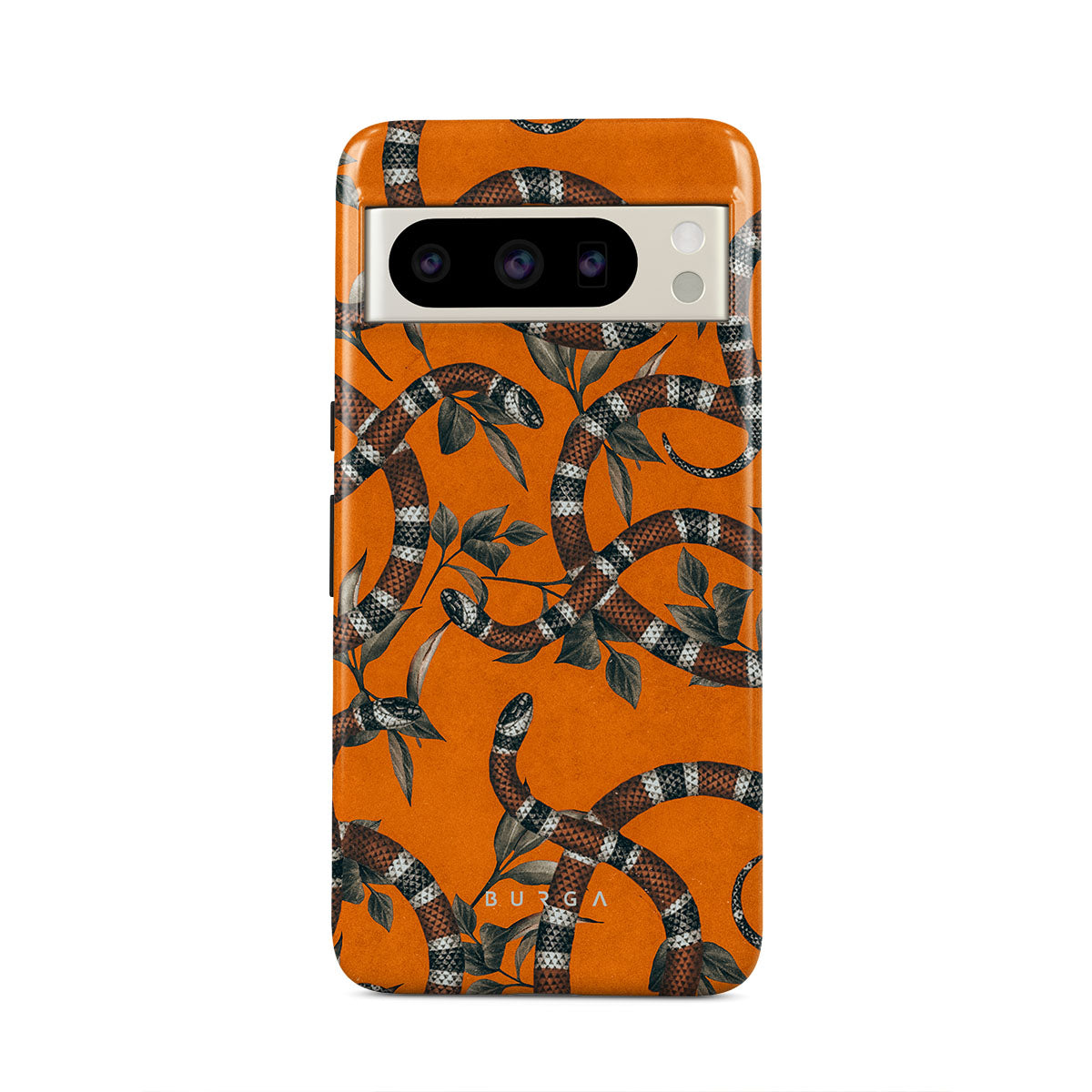 Take a bit of fierceness with yourself with our bright orange and dangerously beautiful Google Pixel 8 Pro phone case with a snake pattern. This case is real eye candy for fashion lovers and just as needed for those who strive to keep their phones protected.