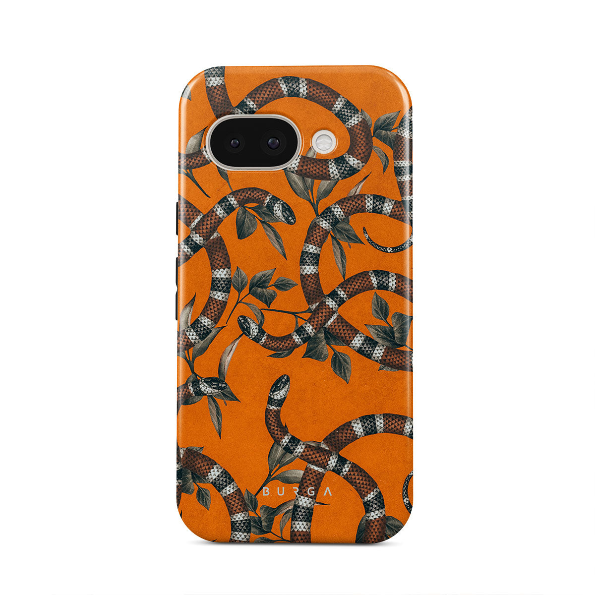 Take a bit of fierceness with yourself with our bright orange and dangerously beautiful Google Pixel 9a phone case with a snake pattern. This case is real eye candy for fashion lovers and just as needed for those who strive to keep their phones protected.