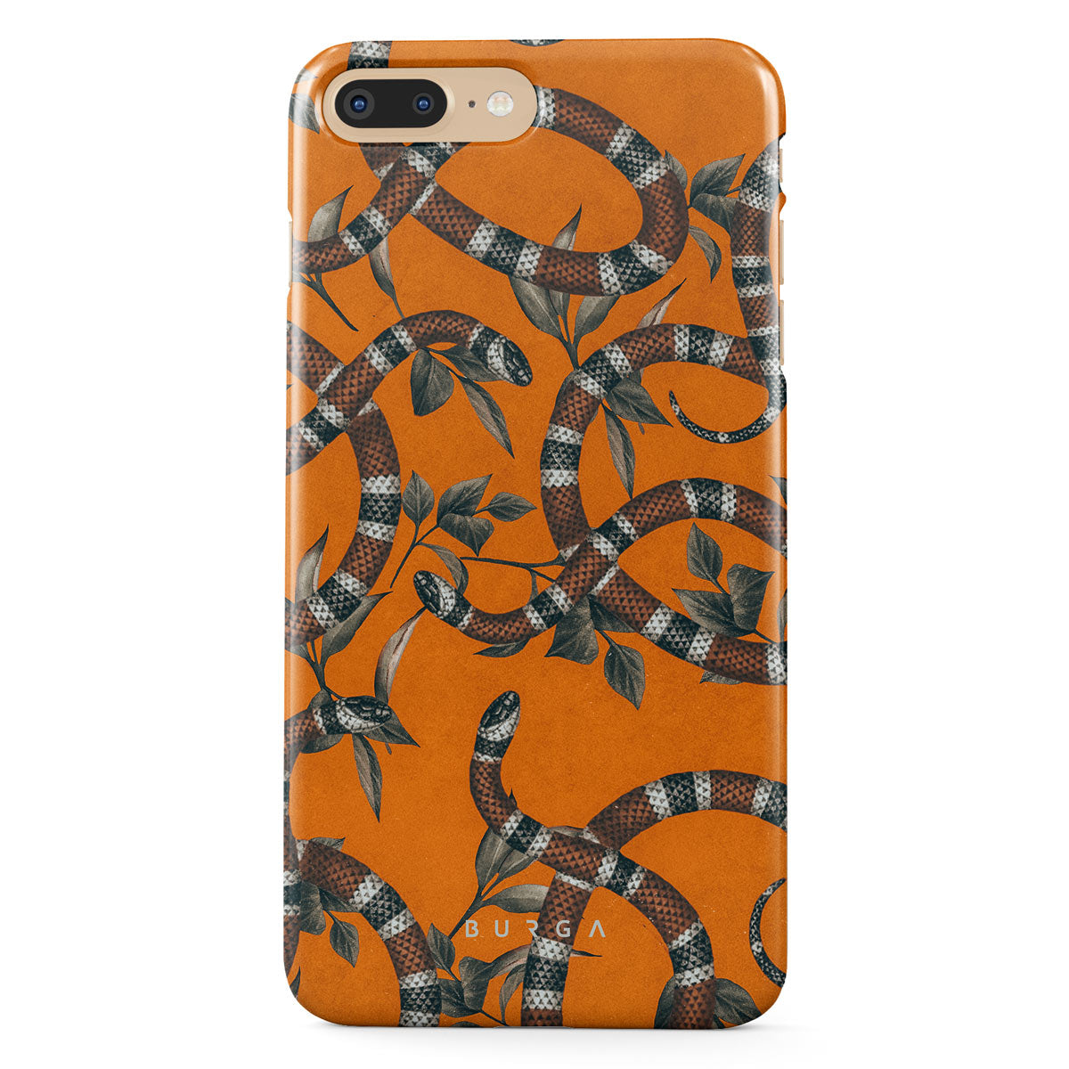 Take a bit of fierceness with yourself with our bright orange and dangerously beautiful iPhone 7 Plus 8 Plus phone case with a snake pattern. This case is real eye candy for fashion lovers and just as needed for those who strive to keep their phones protected.