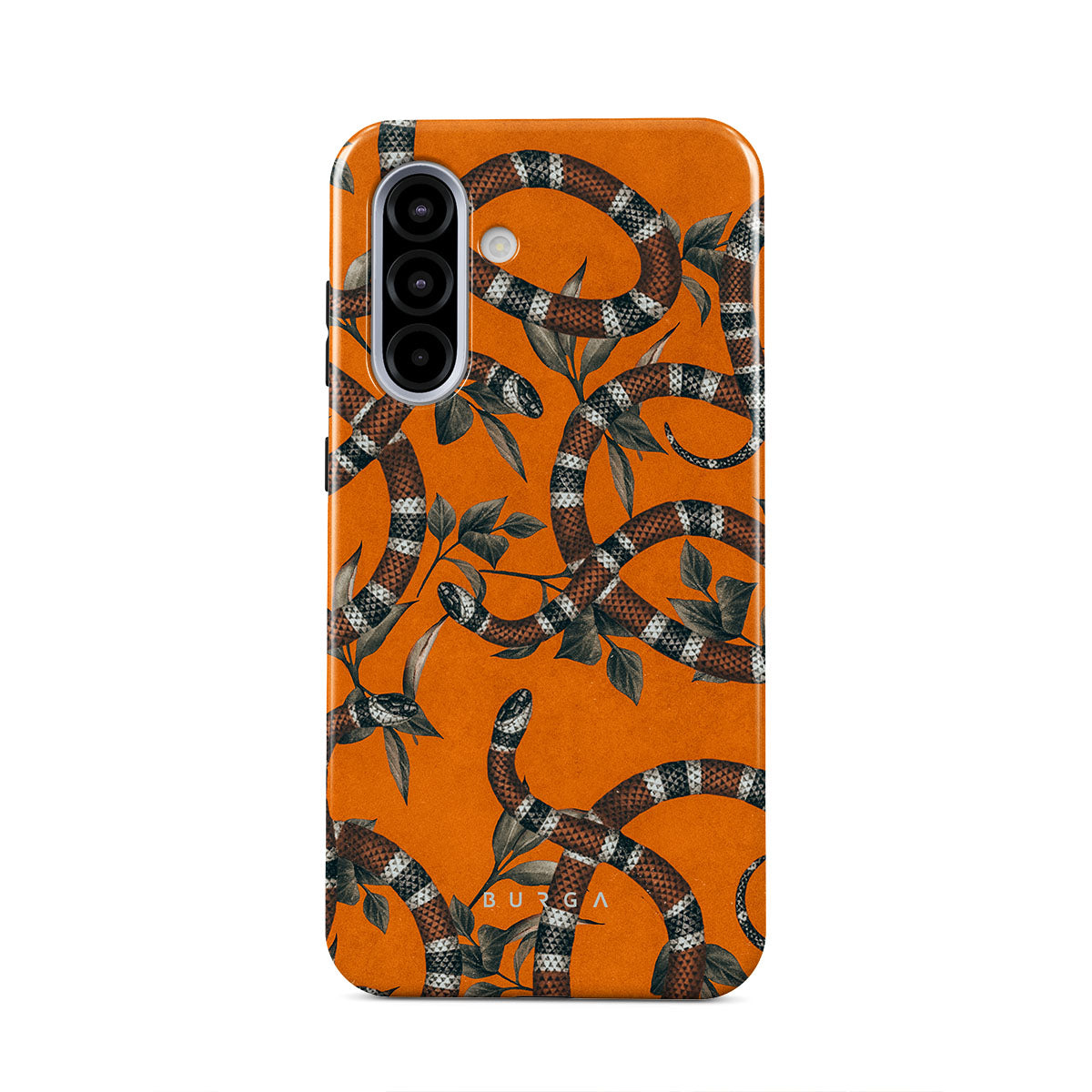 Take a bit of fierceness with yourself with our bright orange and dangerously beautiful Samsung Galaxy A36 5G phone case with a snake pattern. This case is real eye candy for fashion lovers and just as needed for those who strive to keep their phones protected.