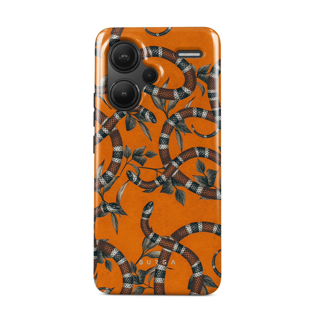 Take a bit of fierceness with yourself with our bright orange and dangerously beautiful Xiaomi Redmi Note 13 Pro+ 5G phone case with a snake pattern. This case is real eye candy for fashion lovers and just as needed for those who strive to keep their phones protected.
