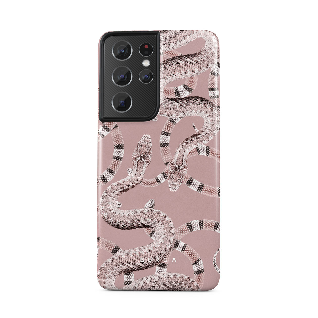Bring the fierceness with our Poolside Glam Samsung Galaxy S21 Ultra phone case. With the pastel pink case featuring snakes, let everyone know that you can always stand for yourself no matter your kind nature. Make a statement and protect your phone at the same time.
